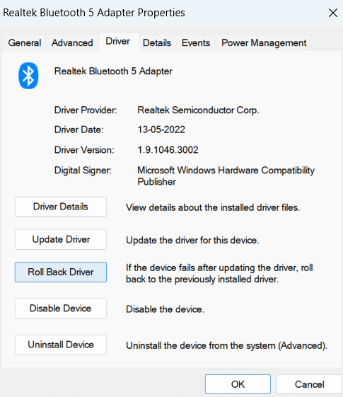 Se a sua versão atual do driver estiver criando problemas, o Windows possui uma funcionalidade integrada com a qual você pode reverter o driver para uma versão anterior quando souber que ele estava funcionando bem. Você pode fazer isso com a ajuda doGerenciador de dispositivos