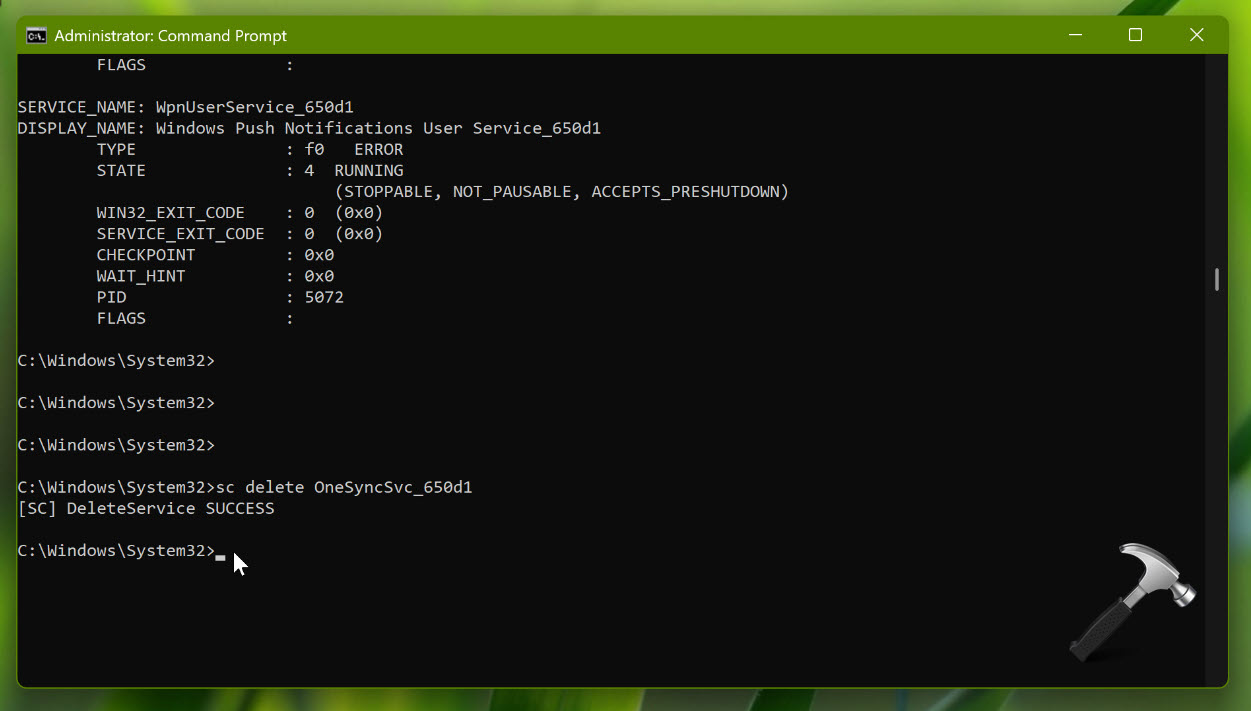 sc delete <service-name>