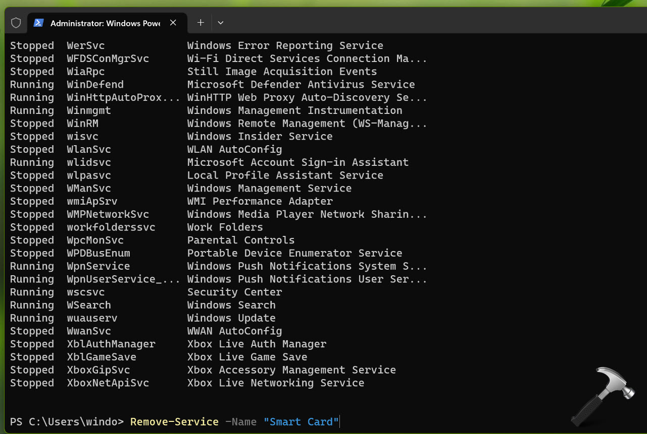 Assim que o comando for executado com sucesso, você descobrirá que o serviço especificado foi removido do seu sistema.