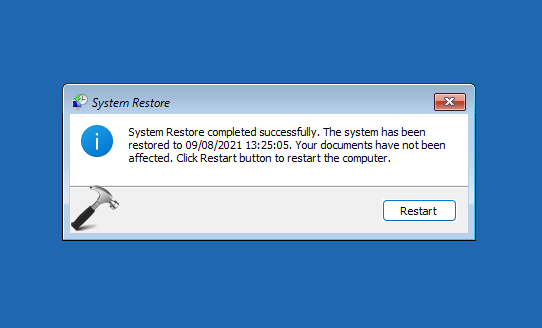 9.Depois de concluído, você será notificado de que ‘Restauração do sistema concluída com sucesso’. Clique emReiniciarbotão e então você poderá fazer o login normalmente para usar seu sistema.