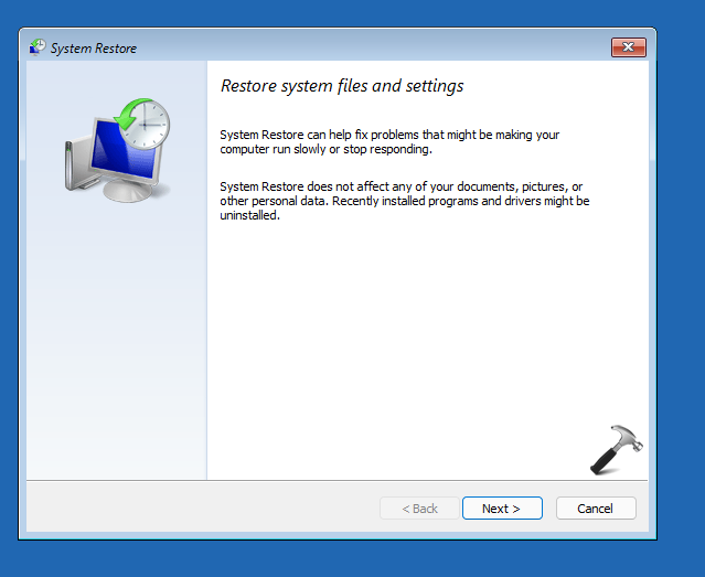 3.CliquePróximona janela Restauração do sistema.