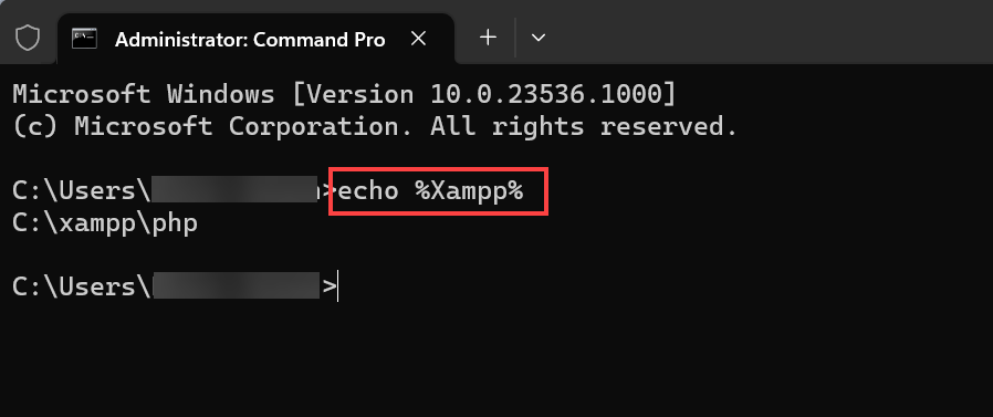 2.Digite oecho %variablename%comando na janela do prompt de comando e pressione Enter. Substitua onome da variávelcom o nome da variável que você criou.