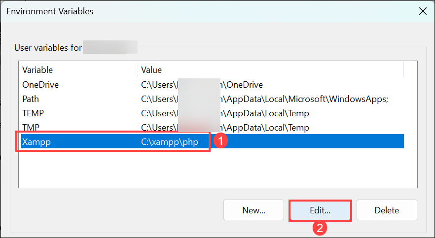 1.Abra a janela “Variáveis de Ambiente” conforme descrito anteriormente.