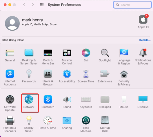 Etapa 2 –QuandoPreferências do Sistemaaberto, clique emRede.