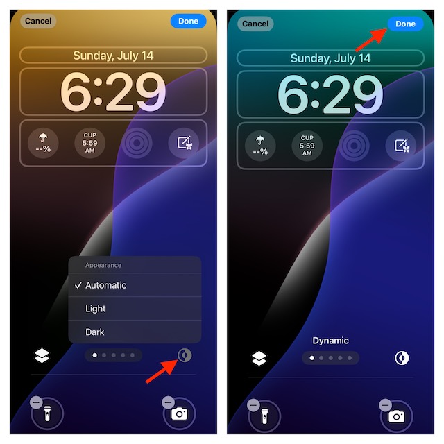 - Selecione a aparência correta para o papel de parede e toque no botão Concluído na parte superior para finalizar. Lembre-se que para que o papel de parede mude de cor de forma dinâmica, é necessário selecionar a opção “Automático”.