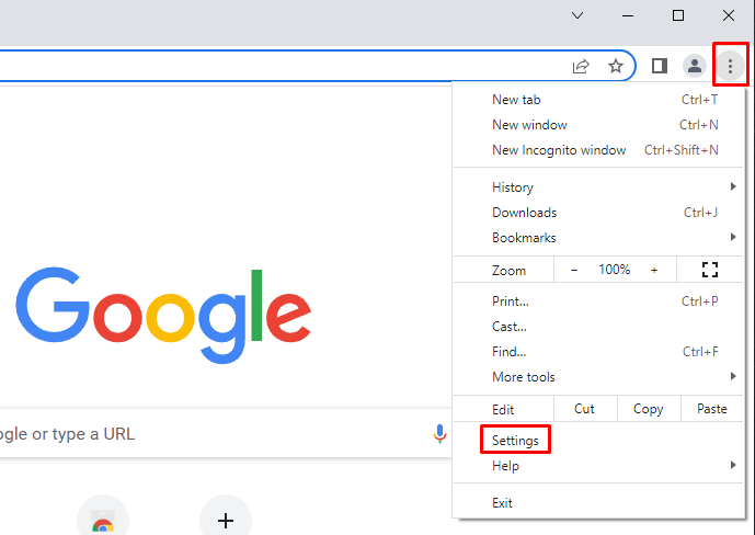 - Abra o Google Chrome e vá paraConfiguraçõesdos três pontos verticais.