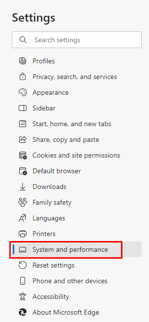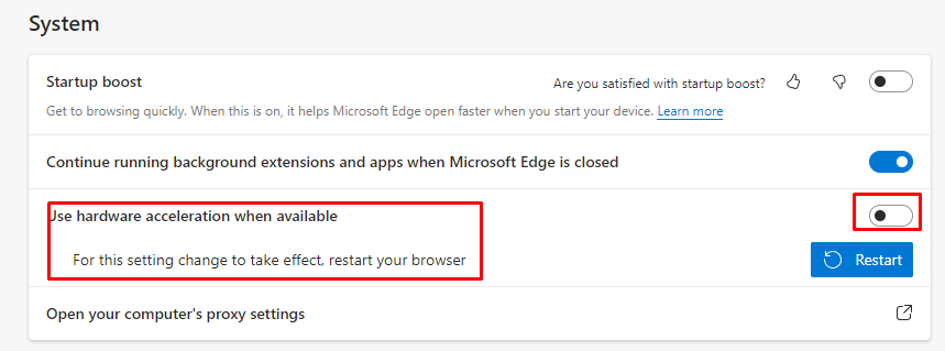 - SelecioneSistemano menu da barra lateral esquerda e desative oUse aceleração de hardware quando disponívelopção.