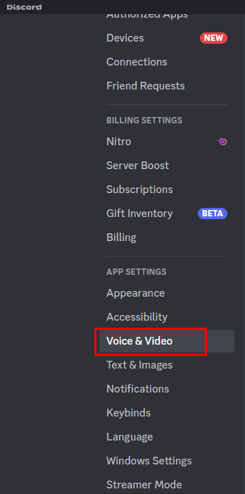 - No menu do lado esquerdo, encontreVoz e Vídeosob oConfigurações do aplicativoseção.