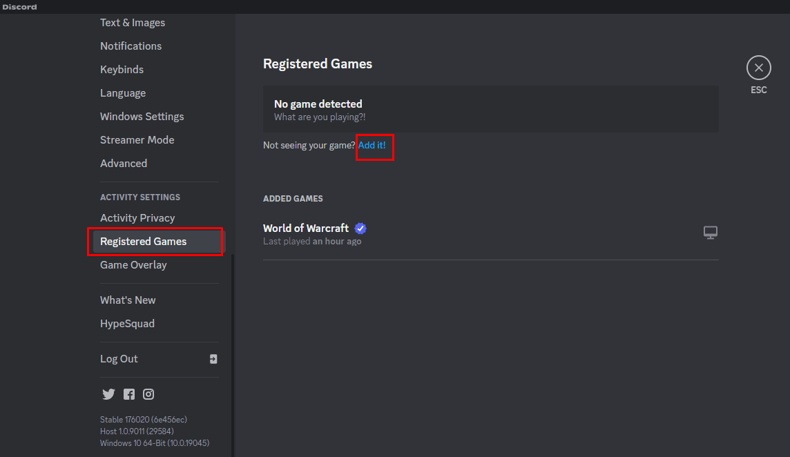 - SelecioneJogos Registradossob oConfigurações de atividadesseção do menu da barra lateral. Na janela principal cliqueAdicione!