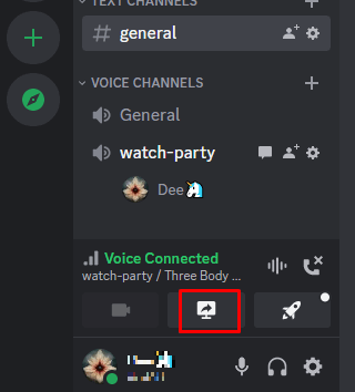 - Selecione oCompartilhar telaopção acima do seu nome de usuário ao entrar no canal de voz.