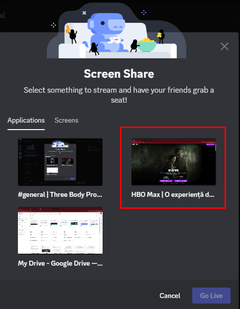 Embora o recurso Go Live do Discord tenha sido projetado para transmitir jogos ao vivo, você pode usá-lo para transmitir o que estiver assistindo no HBO MAX para seus amigos. Você também pode transmitir Hulu, Netflix e muito mais usando o Discord.