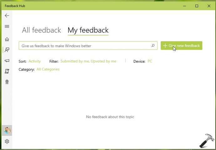 3.No painel esquerdo, vá para a guia Feedback. Agora vá paraMeu feedback. Clique noDê novos comentáriosbotão.