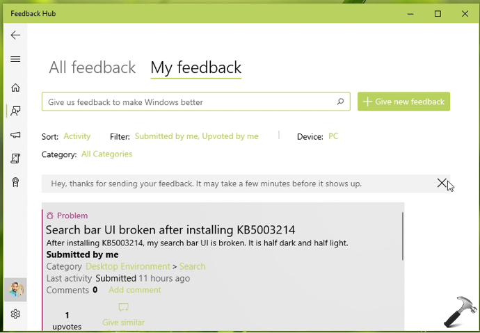 1.AbrirCentro de feedbackusando o Windows Search ou pressionando+Fchaves.