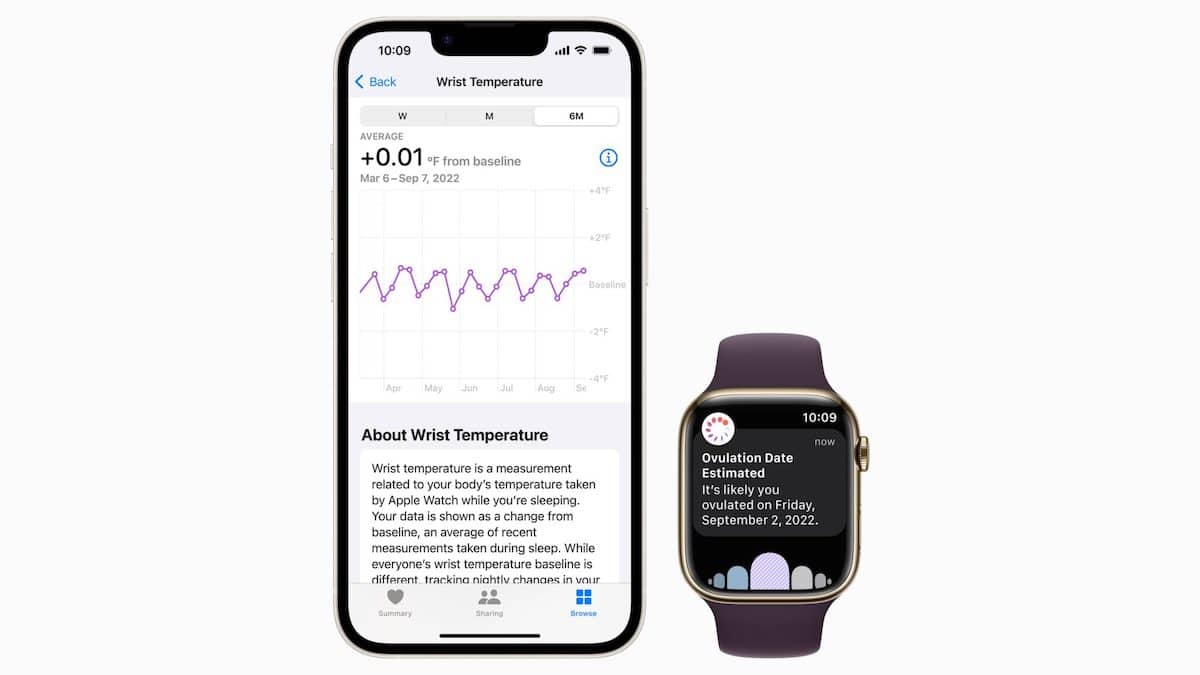 O Apple Watch Series 8 ou Apple Watch Ultra usa dados de temperatura do pulso para detectar a mudança bifásica, que é um aumento de temperatura que geralmente ocorre após a ovulação. Algoritmos avançados usam dados de temperatura do pulso e dados de ciclo registrados para estimar o dia em que a ovulação provavelmente ocorreu.