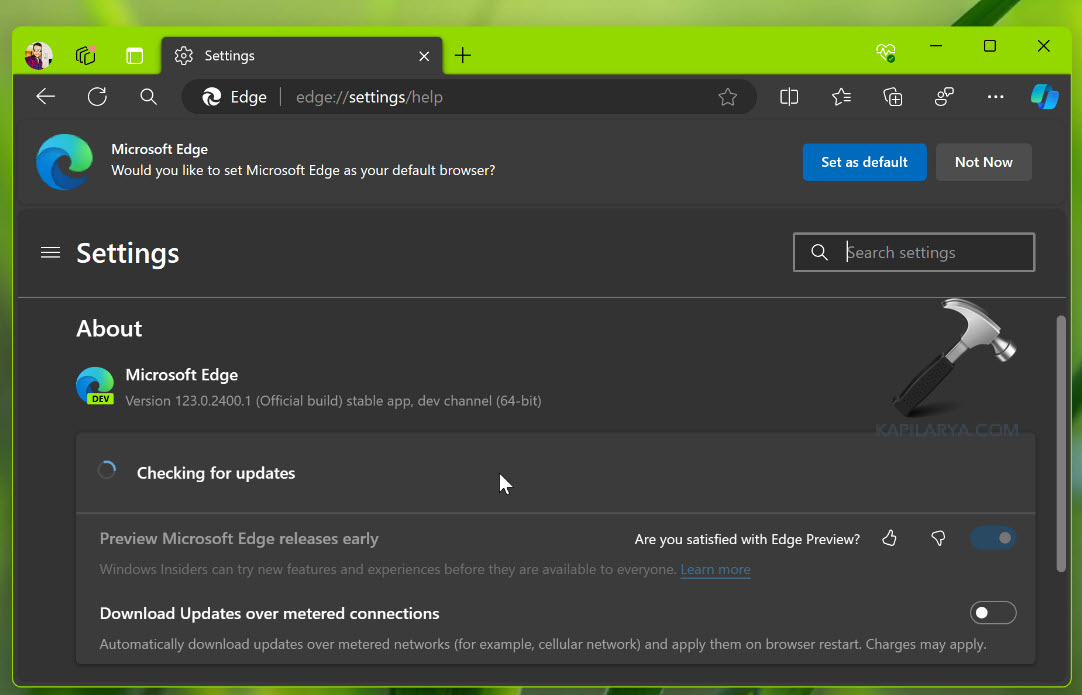 Vou mostrar isso com o exemplo do Microsoft Edge. Você pode seguir etapas semelhantes para o outro aplicativo que deseja atualizar. Portanto, no Microsoft Edge, se eu for para a seção Sobre, como na seção Sobre, o número da versão do Microsoft Edge será exibido e, assim que eu for para essa página, ele começará a verificar se há atualizações.