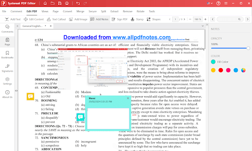 5. Adicione notas:Anexe notas adesivas às suas páginas PDF, fornecendo comentários, explicações ou lembretes adicionais. Clique no local desejado e uma janela de Notas aparecerá onde você poderá digitar seu texto.