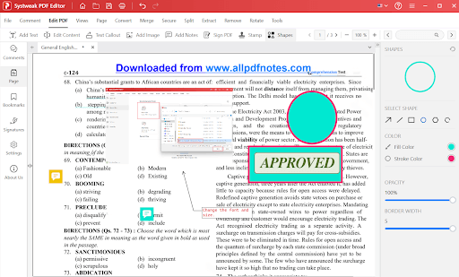 8. Adicione formas:Systweak PDF Editor oferece uma variedade de formas, incluindo retângulos, linhas, círculos, polígonos e polilinhas. Você pode brincar com cores, traços, opacidade e muito mais.