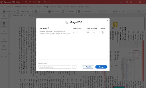 Para mesclar seus PDFs:Esta ferramenta permite mesclar vários documentos PDF em um único arquivo coeso. Você pode até mesclar as páginas do PDF de acordo com os números das páginas.