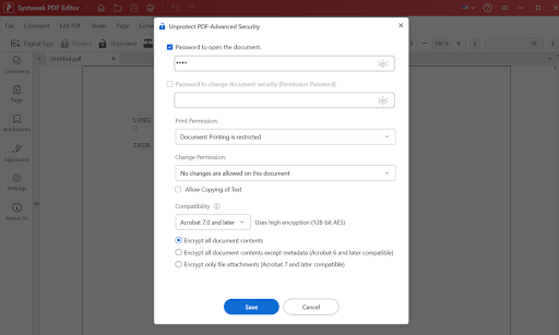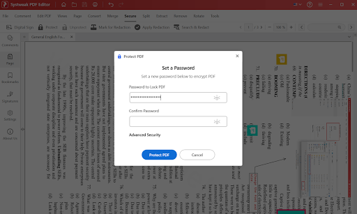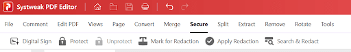 Para proteger seus PDFs –Systweak PDF Editor oferece muitas ferramentas que permitem proteger e redigir informações confidenciais em seus documentos PDF.