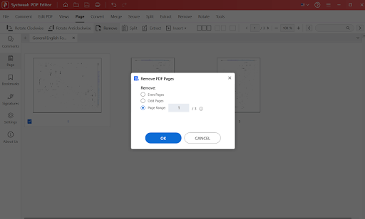 2. Remover páginas:Com esta subferramenta, você pode excluir facilmente páginas indesejadas do seu documento PDF. Selecione a página que deseja excluir e clique no botão “Remover”!