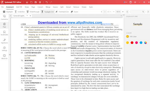 5. Linha à mão livre:Esta subferramenta versátil permite desenhar linhas à mão livre diretamente em seu PDF. Se você precisa fazer anotações, esboços ou adicionar marcações personalizadas, a ferramenta de linha à mão livre oferece flexibilidade e criatividade. Você pode escolher a cor desejada e ajustar o nível de opacidade e a largura da borda na barra de ferramentas do lado direito.