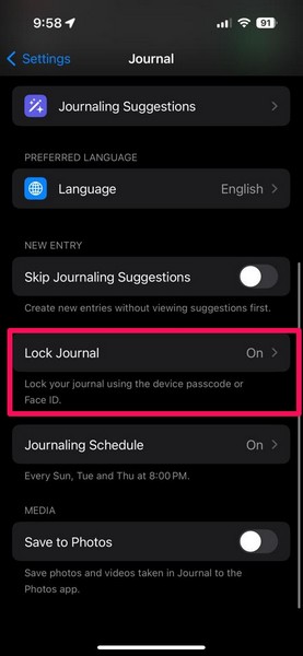 Dito isso, você pode seguir as etapas abaixo para configurar a proteção do Face ID para o aplicativo Journal diretamente no seu iPhone no iOS 17: