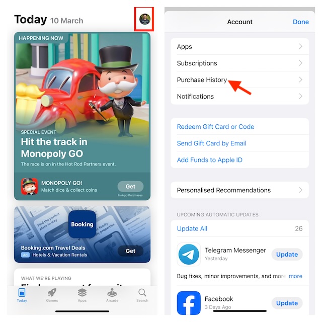 Verifique o histórico de compras do Apple ID no aplicativo Configurações no iOS e iPadOS