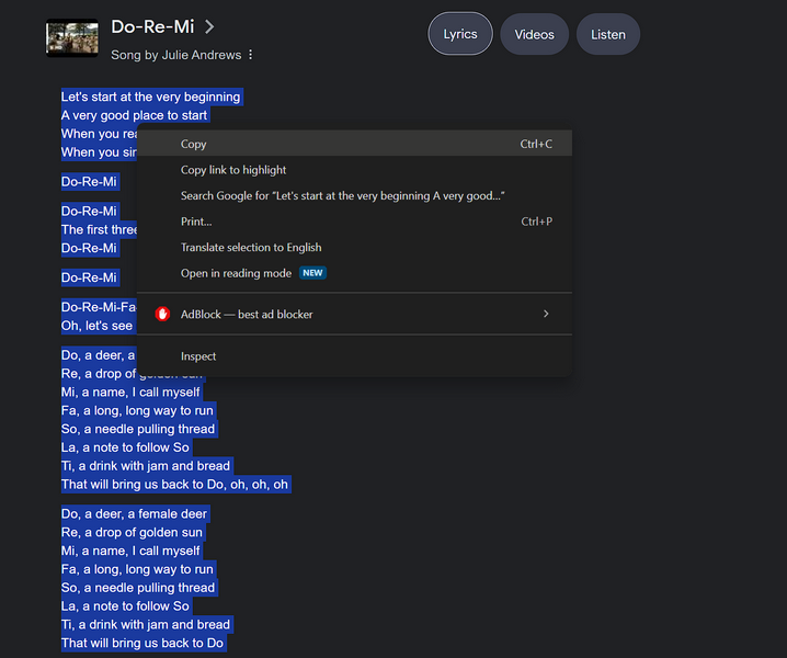 5.Para músicas que já possuem letras disponíveis, vocêencontre-os em texto simplesna caixa de letras.