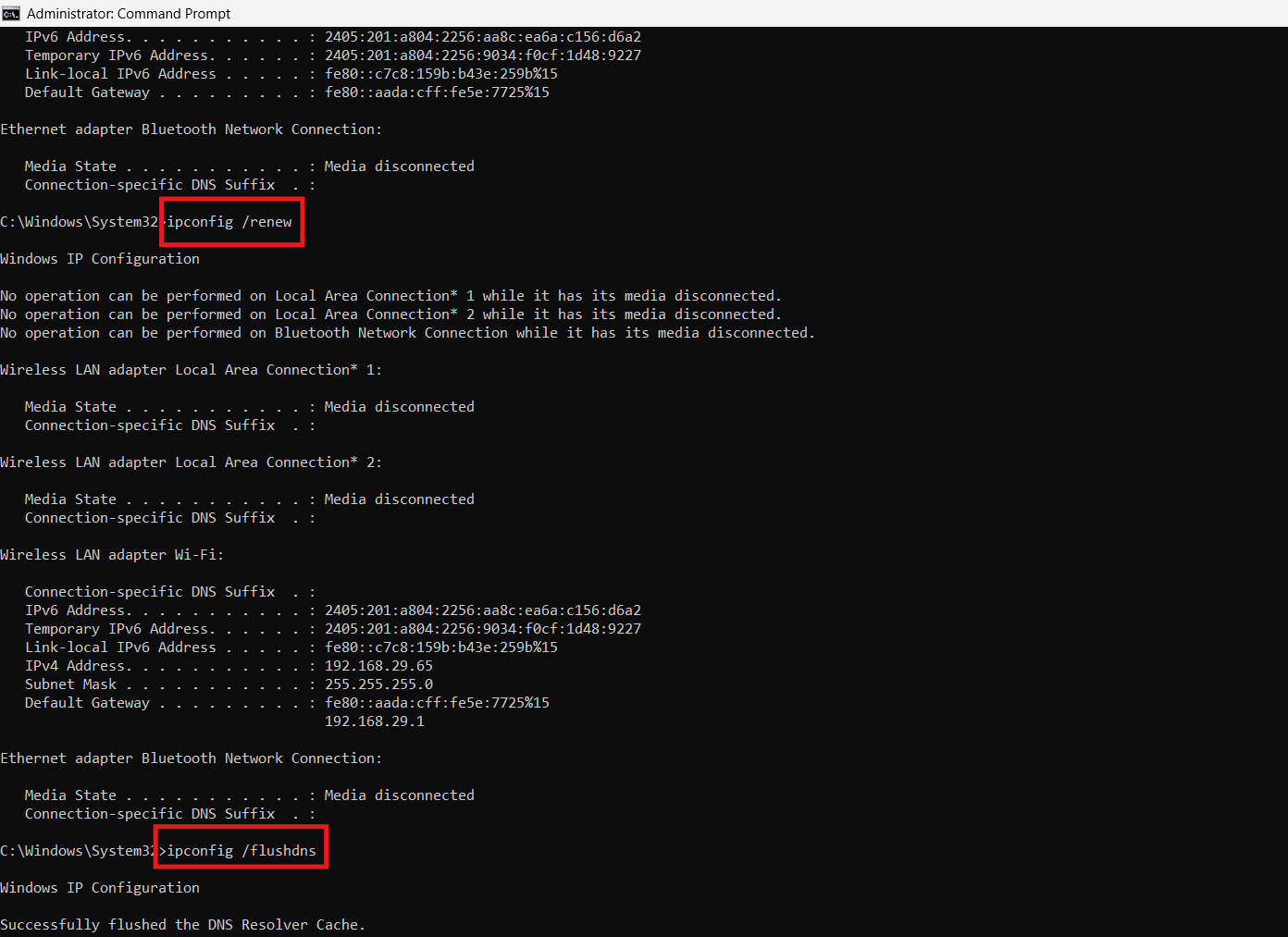 2. Corraipconfig /releaseentãoipconfig /renewdepois disso.