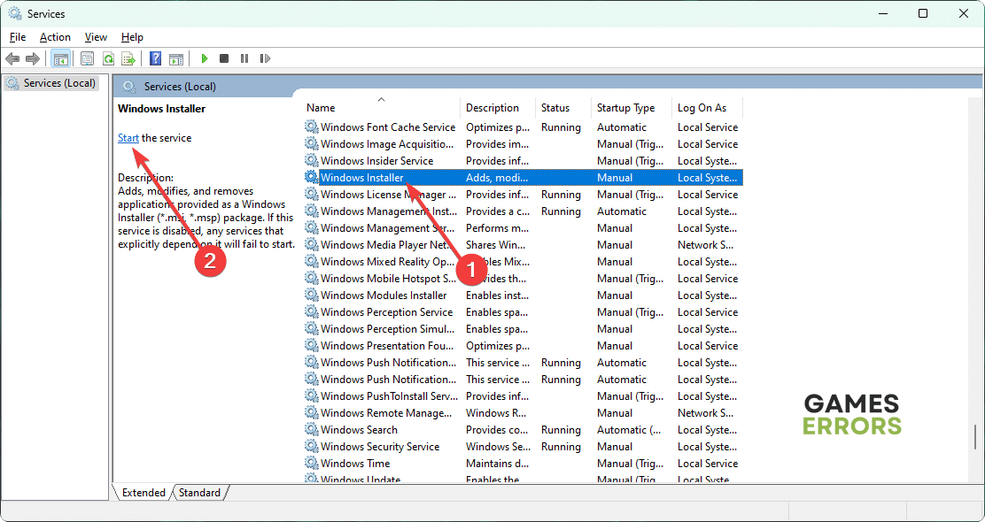 - Procure oServiço Windows Installer, selecione-o e clique emComeçarse ainda não estiver em execução.
