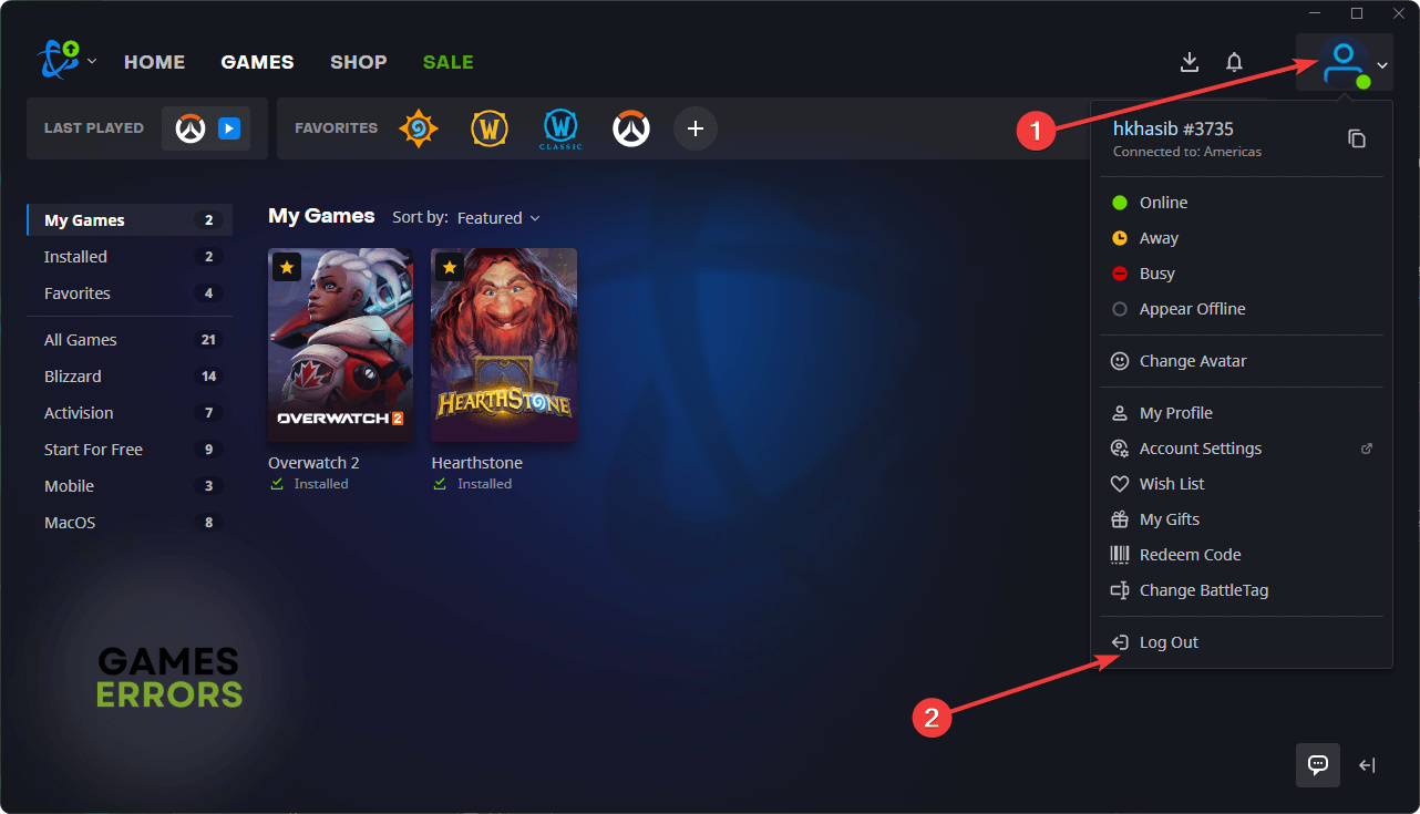 Sair e fazer login novamente é um método muito eficaz para corrigir erro de falha na compra do Overwatch 2.