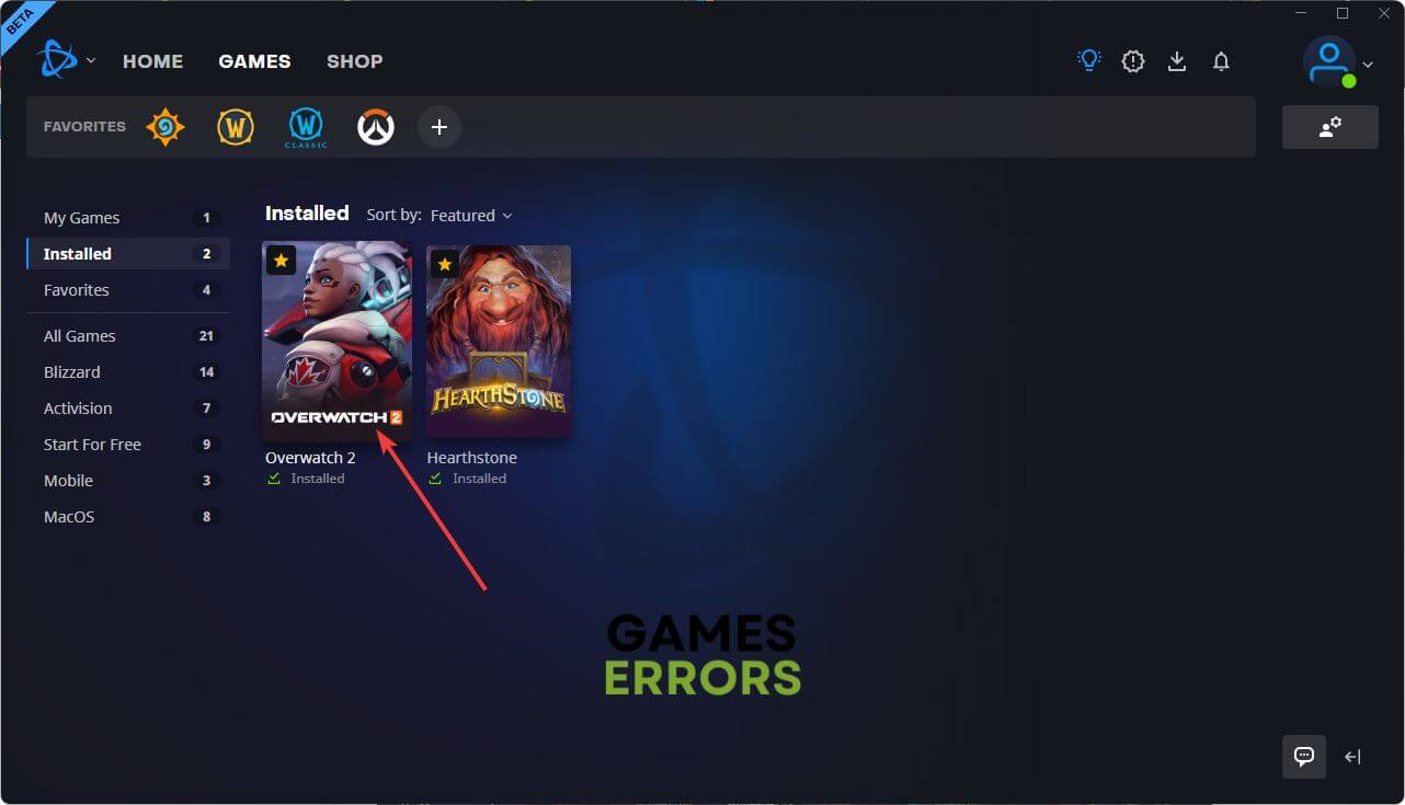 - Vá para a biblioteca de jogos Battle.net como antes.