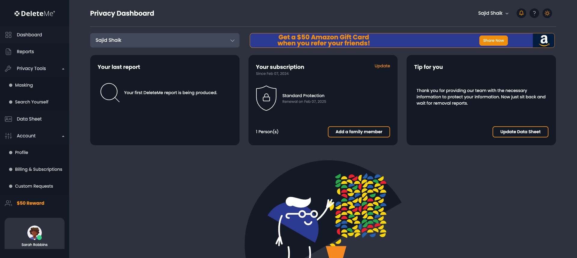 DeleteMe também fornece relatórios de privacidade personalizados, ferramentas e até mesmo um consultor de privacidade pessoal para ajudá-lo a compreender e melhorar sua privacidade online.