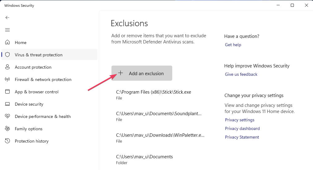 4. Na seção Exclusões, clique no botãoAdicionar ou remover exclusõesopção.