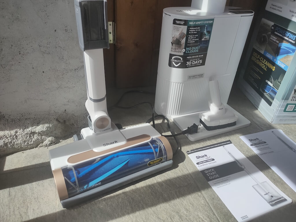 Aqui está tudo o que você encontrará na caixa ao desembalar o aspirador Shark Wandvac Self-Empty System: