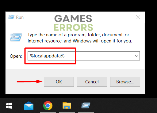 - Use oChave do Windows+Ratalho para abrir oCaixa de diálogo Executar, tipo%localappdata%e bateuOK.