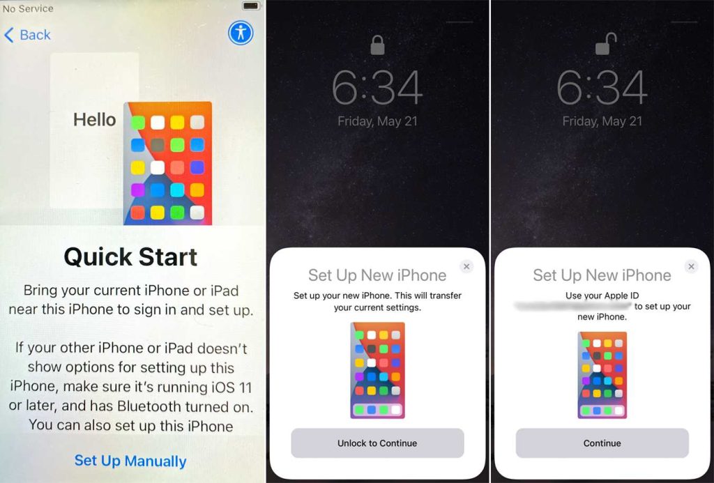 3. Ligue o seu novo iPhone e siga as instruções de configuração até chegar à tela “Quick Start”.