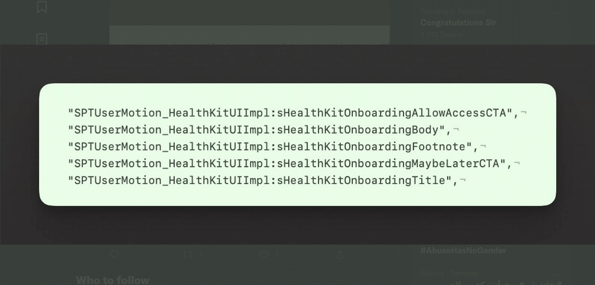 No Twitter, Messinadisseque encontrou um código no Spotify para o aplicativo iOS que revela que a empresa estava trabalhando na integração com o HealthKit para acessar informações sobre a atividade física diária dos usuários, como tipo de treino, tempo gasto em exercícios, calorias queimadas, entre outros.