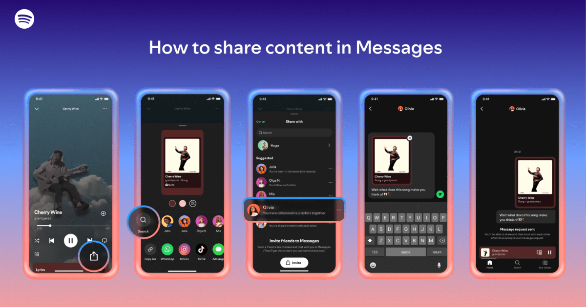 O Spotify introduziu um novo recurso de mensagens diretas em seu aplicativo, permitindo aos usuários compartilhar e discutir músicas, podcasts e audiolivros sem sair da plataforma. As mensagens serão lançadas esta semana para usuários Gratuitos e Premium com 16 anos ou mais em mercados selecionados em dispositivos móveis. A adição marca o esforço mais recente do Spotify para tornar as recomendações mais interativas e trazer o lado social da audição diretamente para o aplicativo.