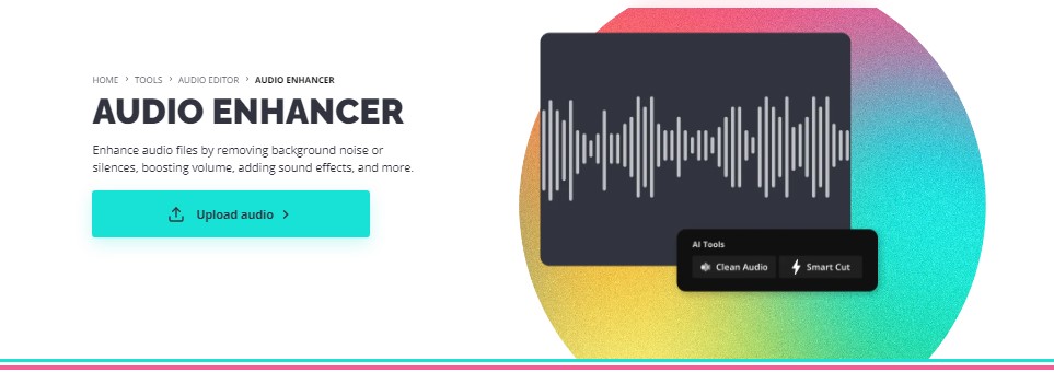 Audioenhancer.aié uma ferramenta de melhoria de qualidade de som de boa reputação, disponível online. Seus algoritmos integrados de PNL e ML o tornaram inteligente o suficiente para diferenciar diferentes tipos de arquivos de mídia e executar o tipo selecionado de aprimoramento de som.