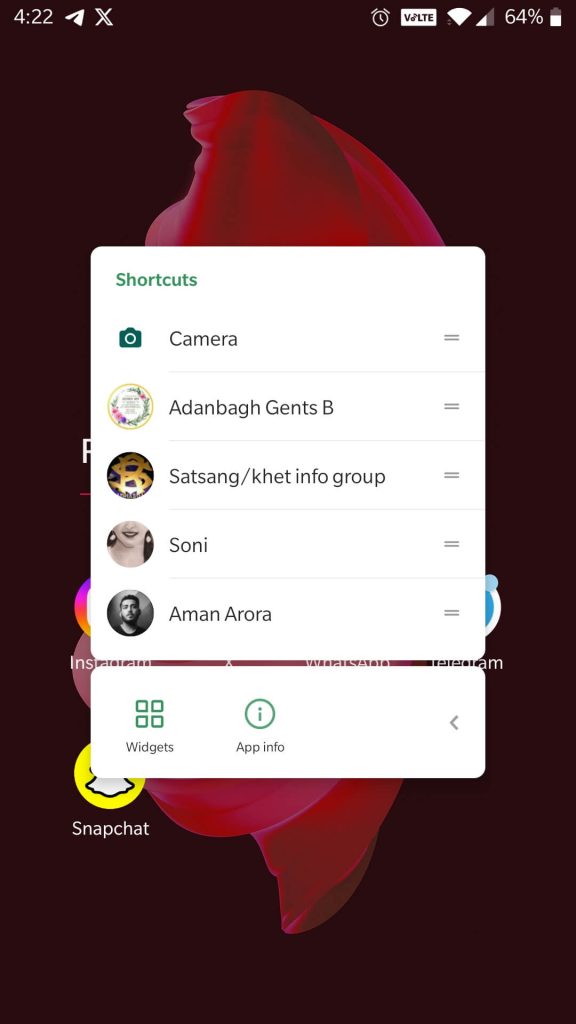 - Toque e segure o ícone do WhatsApp por um segundo e depois clique em‘Informações do aplicativo.’
