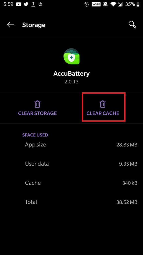 - Toque no‘Limpar Cache’