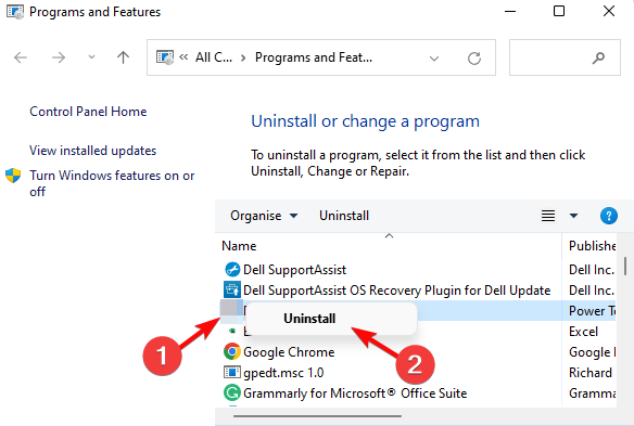 - Agora, à direita, abaixoDesinstalar ou alterar um programa, procure o jogo, clique com o botão direito e selecione Desinstalar.