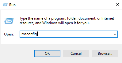 2. Tipo“msconfig”na caixa de diálogo Executar e pressione Enter.