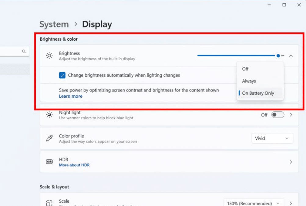 O controle de brilho adaptável de conteúdo do Windows 11 funciona em laptops e 2 em 1 conectados