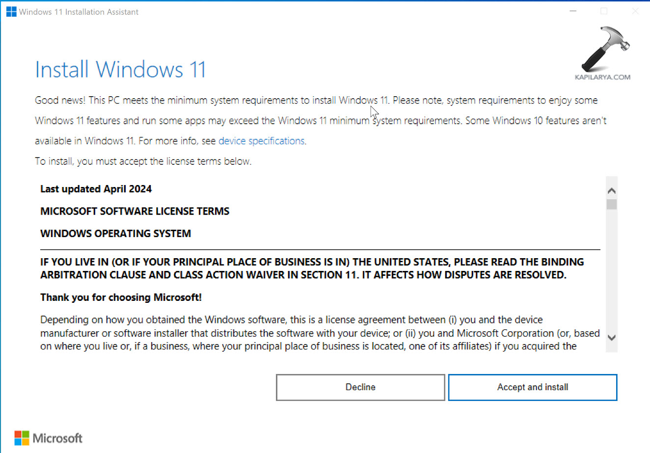 Depois de baixado, basta clicar no arquivo .exe e isso iniciará o Assistente de Instalação. Clique em Aceitar e instalar para prosseguir. Agora a ferramenta obterá automaticamente a atualização do Windows 11 2025 e a instalará.