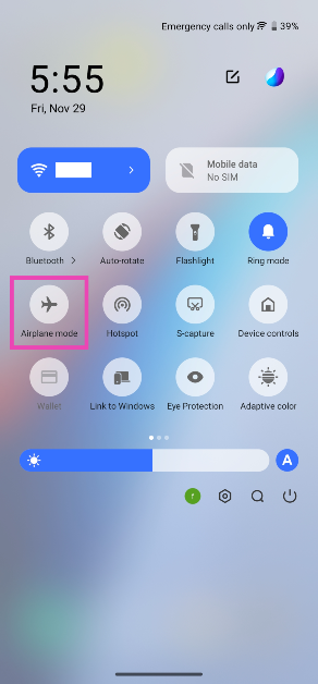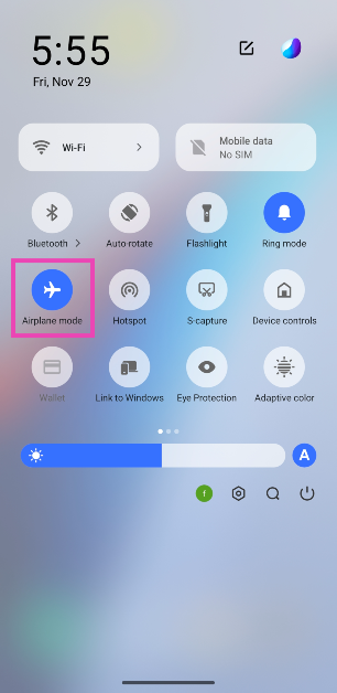 Etapa 1:Deslize para baixo na barra de status para revelar oMenu de configurações rápidase toque noModo Aviãotelha.