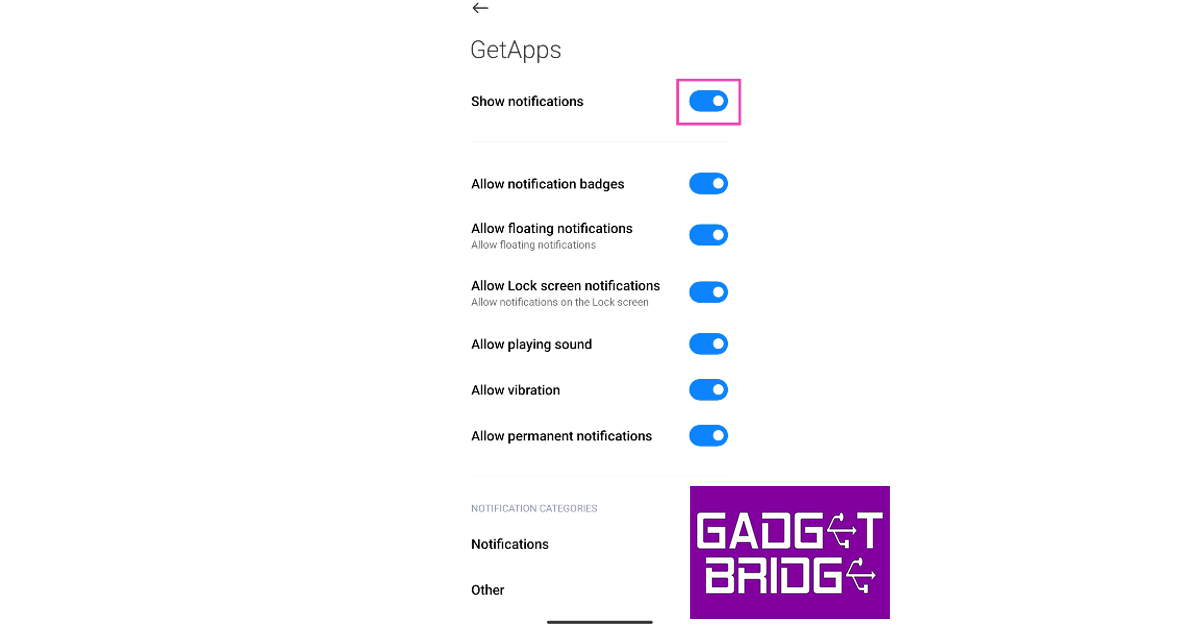 Etapa 5:Desative o botão de alternância para ‘Mostrar notificações’.