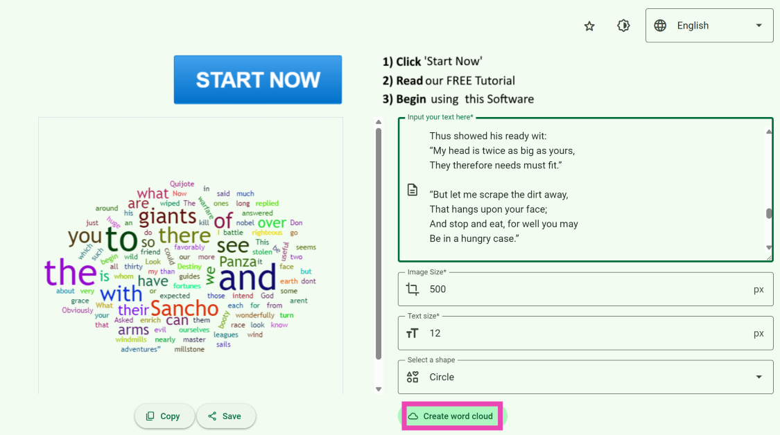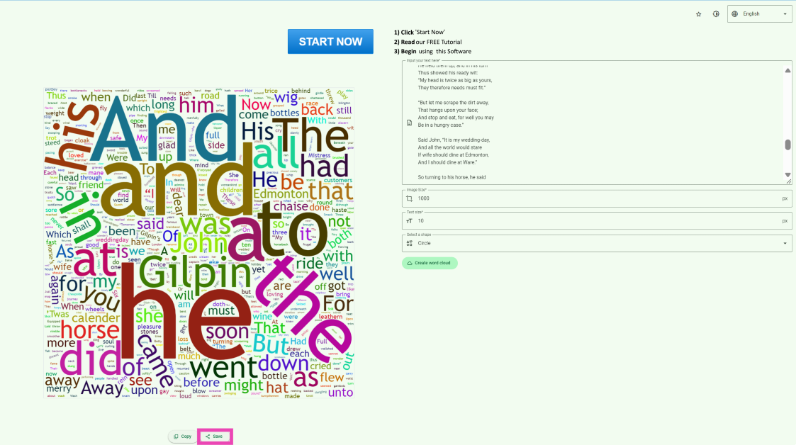 Etapa 4:Depois que a nuvem de palavras for criada, clique no botãoSalvarbotão abaixo da imagem para baixá-lo em seu dispositivo.