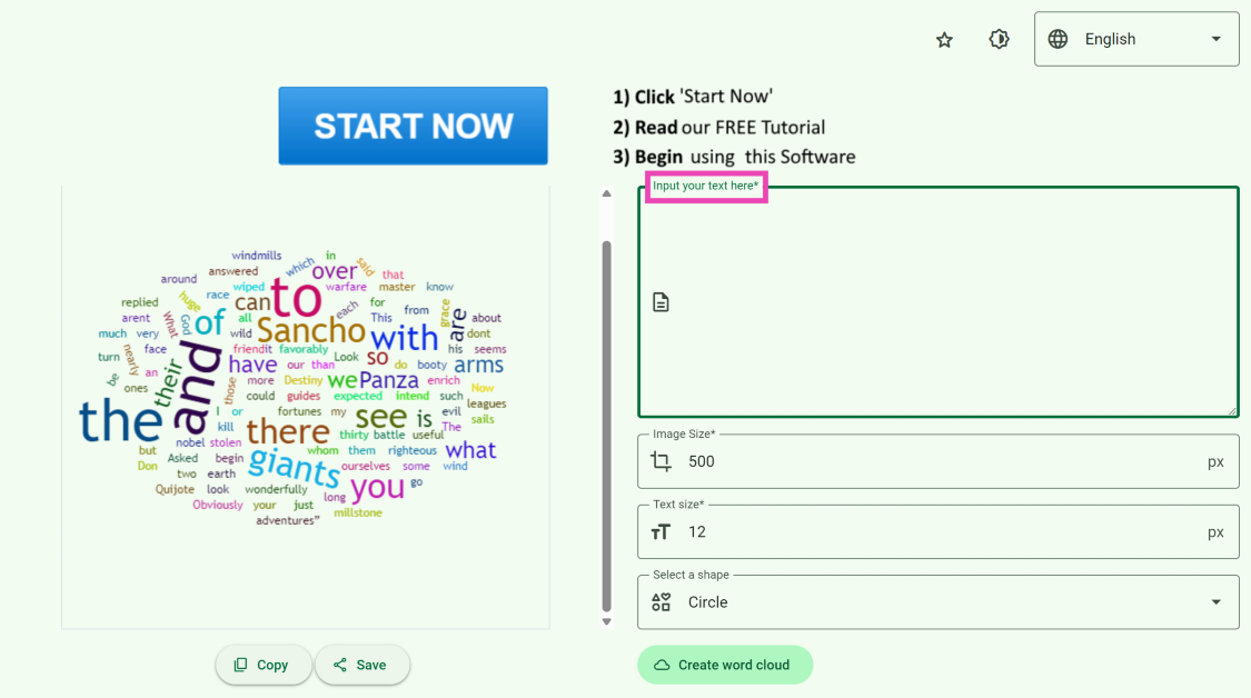 Etapa 1:Vá parahttps://www.freewordcloudgenerator.com/.